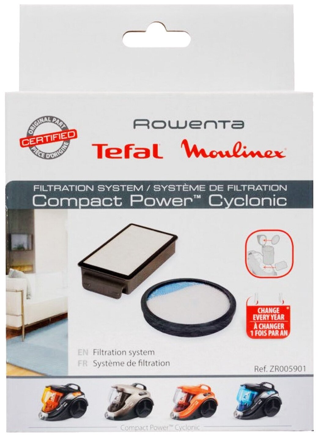 Фильтр для пылесоса Moulinex, Tefal, Rowenta Compact Power Cyclonic - комплект фильтров HEPA + Предмоторный ZR005901