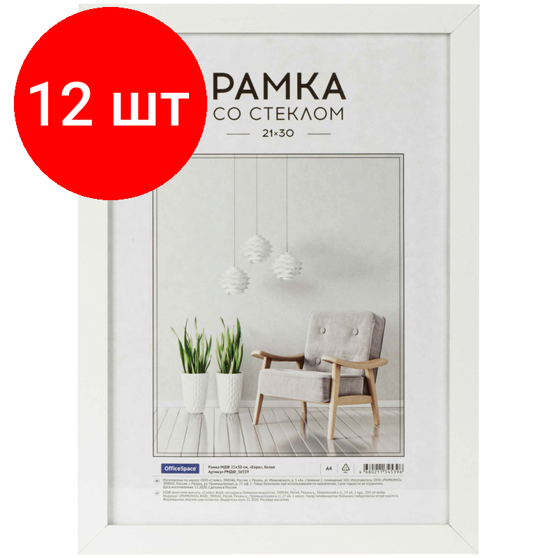 Комплект 12 шт, Рамка МДФ 21*30см, OfficeSpace "Expo", белая информация: