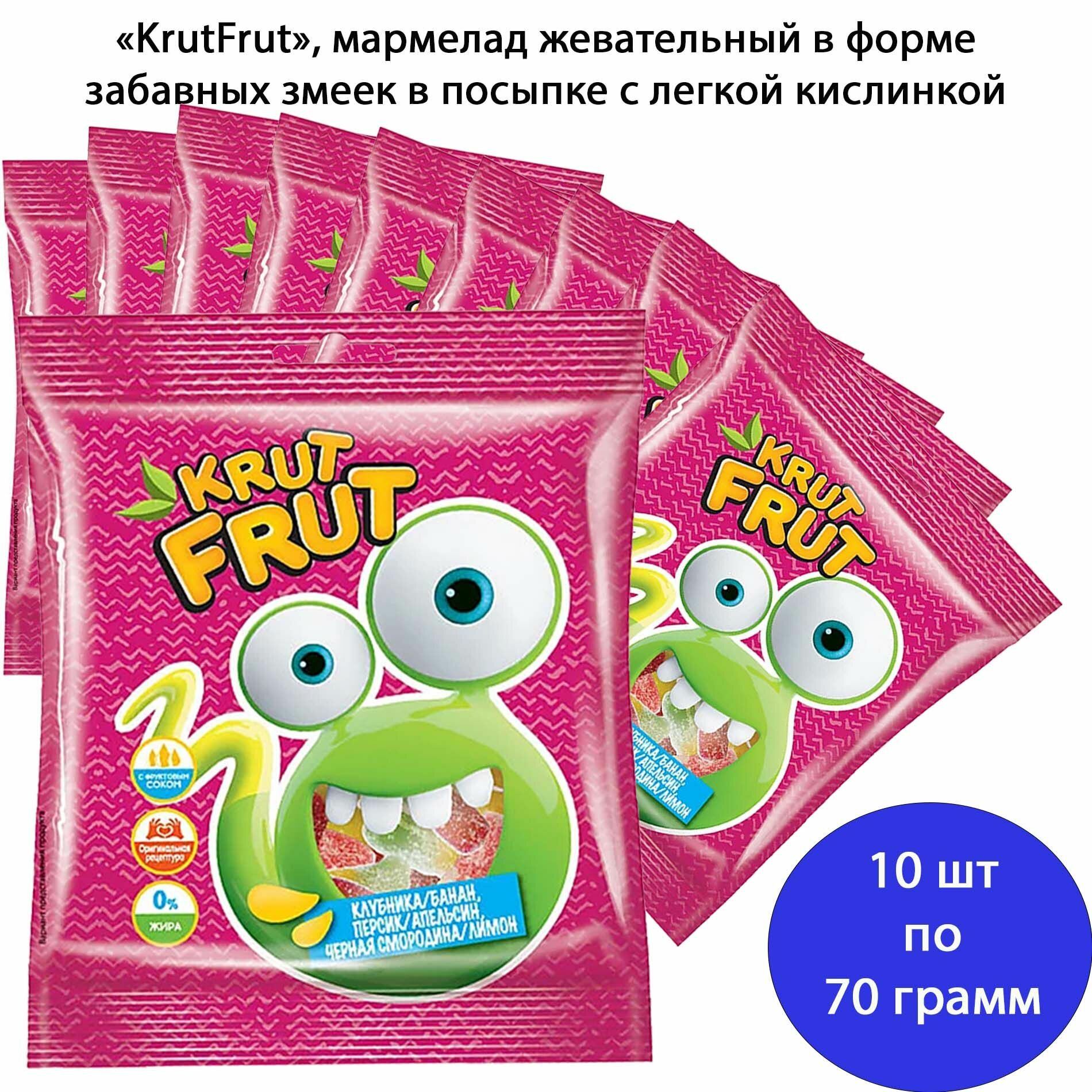 10 цен на КрутФрут, мармелад жевательный в форме забавных змеек в посыпке с легкой кислинкой, 10 шт по 70 г
