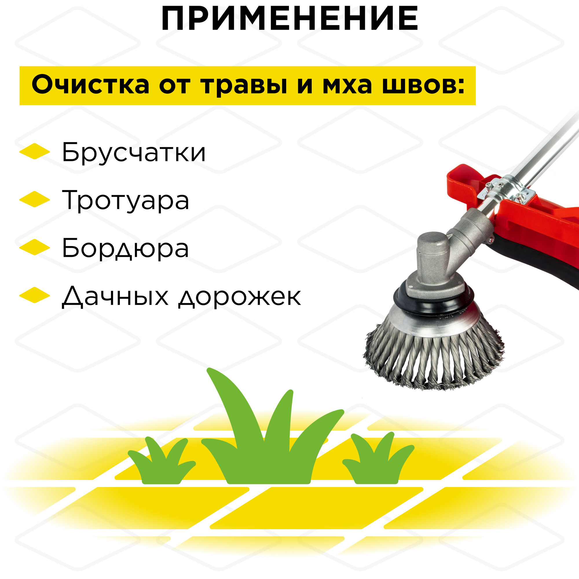 | Подробная комплектация | Кордщетка для триммера DDE металлическая, 150 * 20/25,4 мм в коробке |