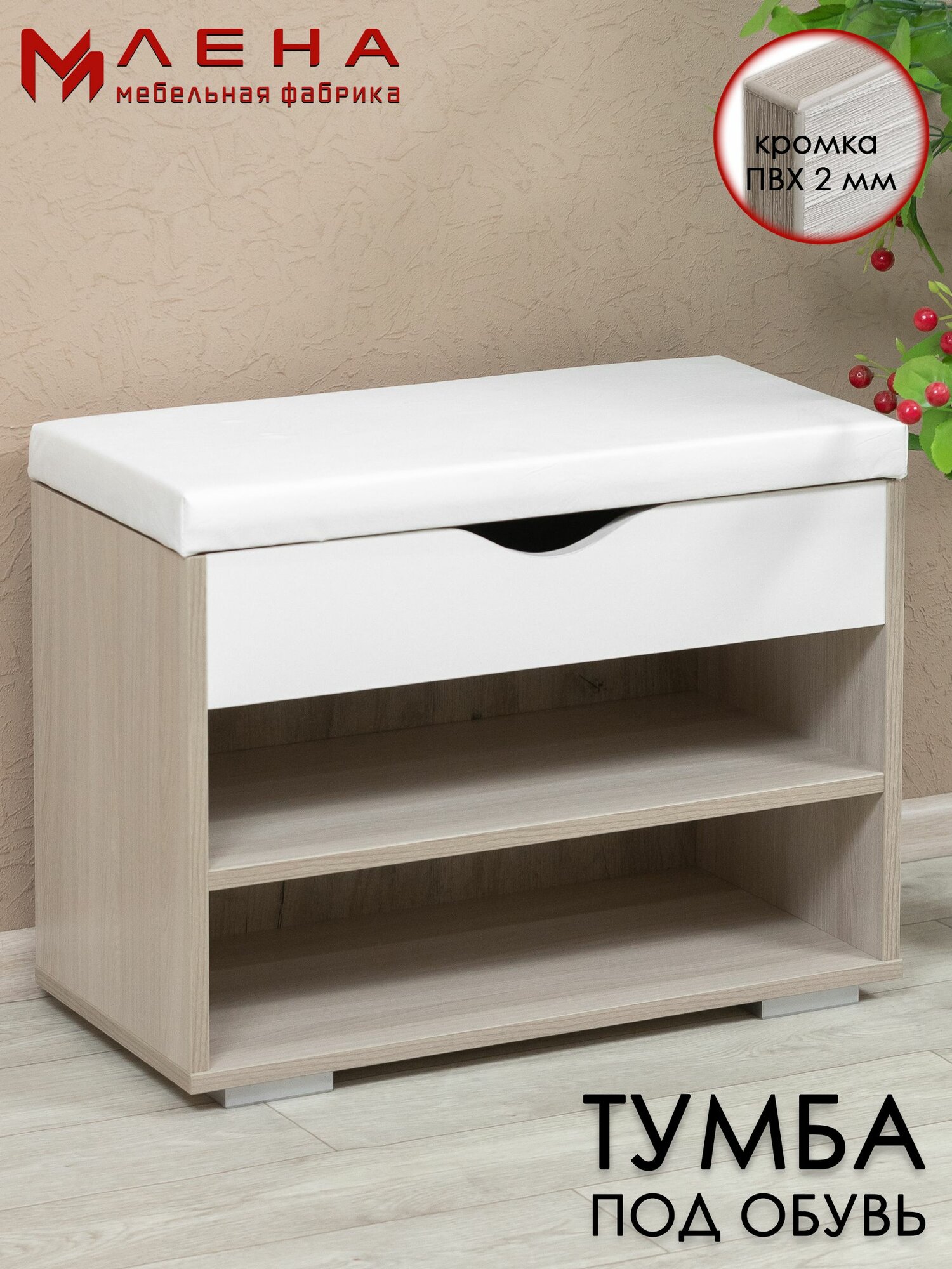 Тумба для обуви в цвете ясень шимо светлый/белый с мягким сиденьем информация: