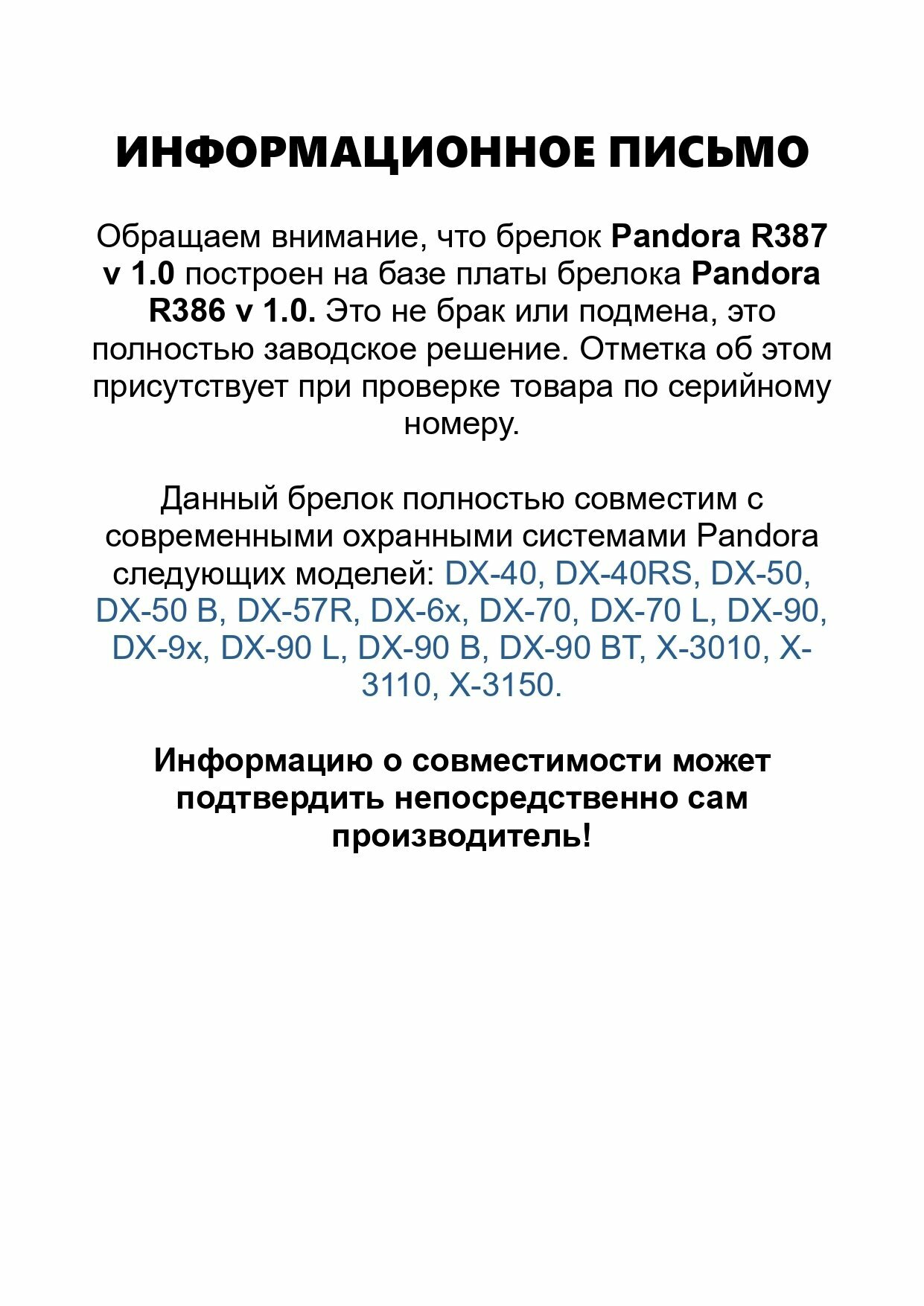 Дополнительный брелок R387 для автомобильной сигнализации Pandora DX-40 40RS 50 50B 50S 57R 6X C115 70 90 9X 90L 90B 90BT, Pandect X-3010 3110 3150 информация: