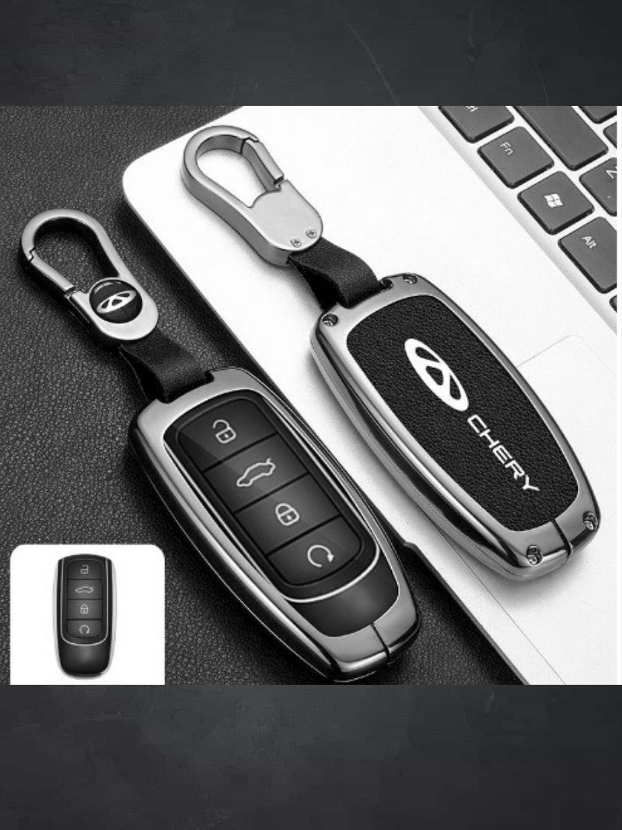 Защитный чехол для ключей Chery, Авто Обнова, черный с логотипом и брелком информация: