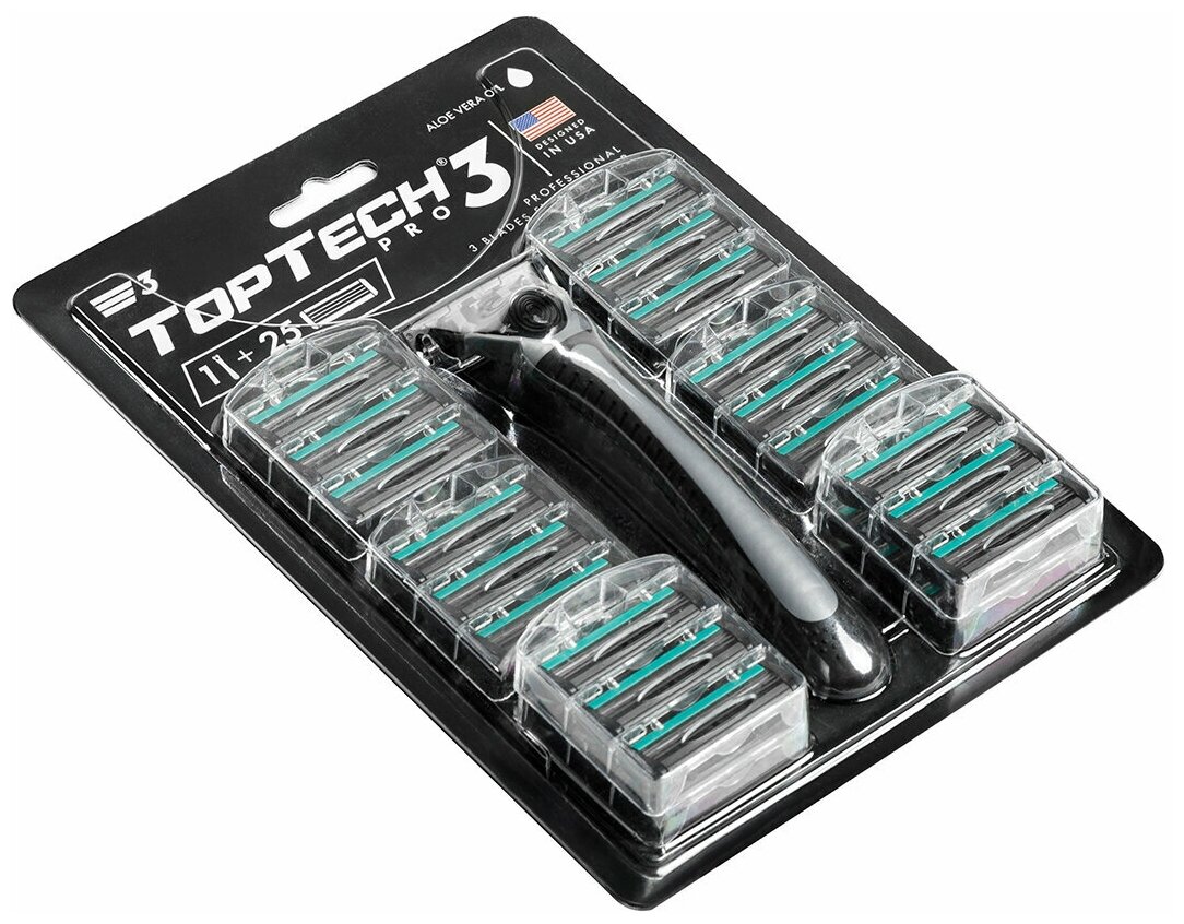 Бритвенный станок TopTech Pro 3, 25 сменных кассеты, 3 лезвия, плавающая головка 622 ₽