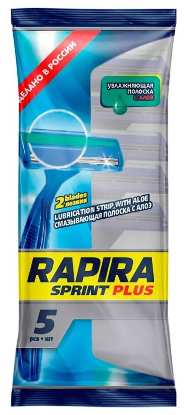 Рапира станок одноразовый2х-лезвенный со смазывающей полоской Sprint Plus 5 кассет информация: