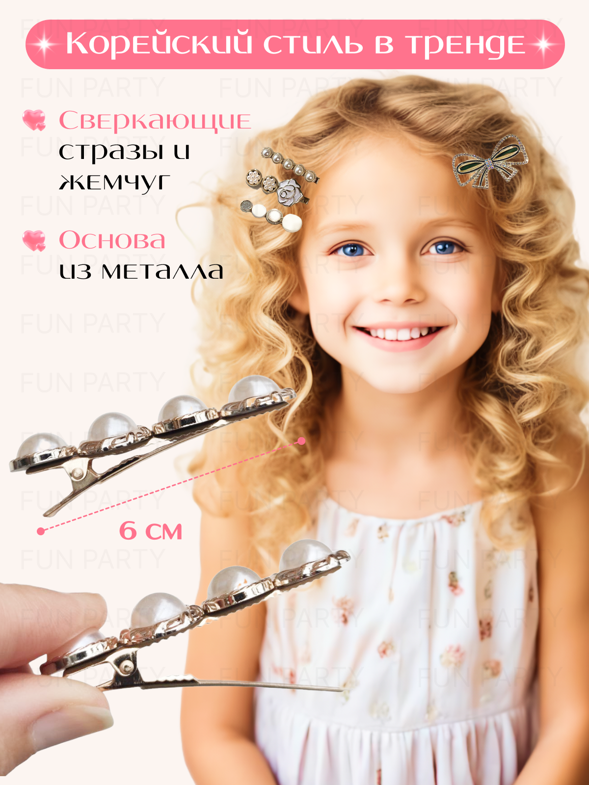 Заколки Fun Party со стразами и жемчугом для девочек, 5 штук информация: