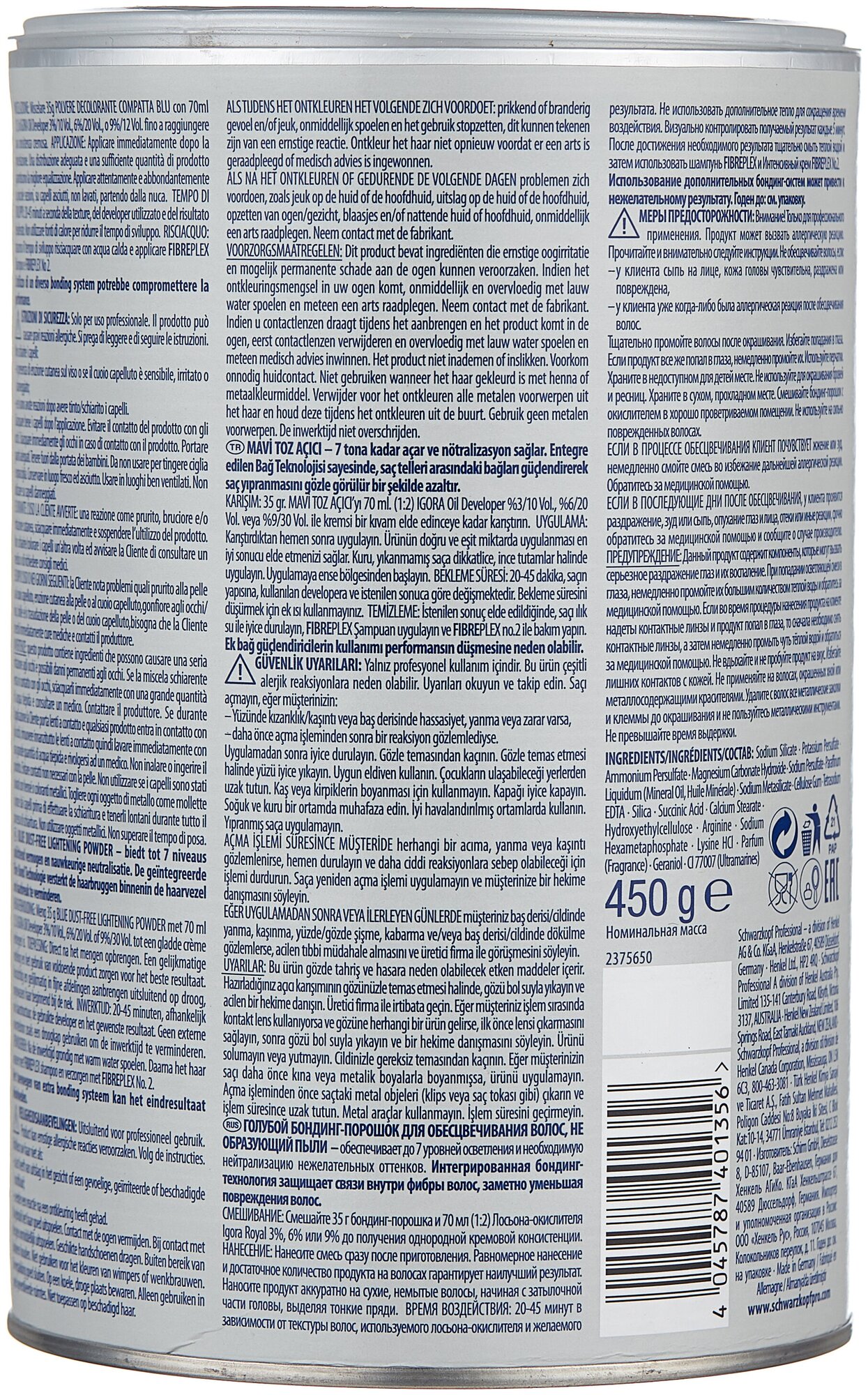 Schwarzkopf Professional Порошок Осветляющий порошок Igora Vario Blond Plus, 450г информация:
