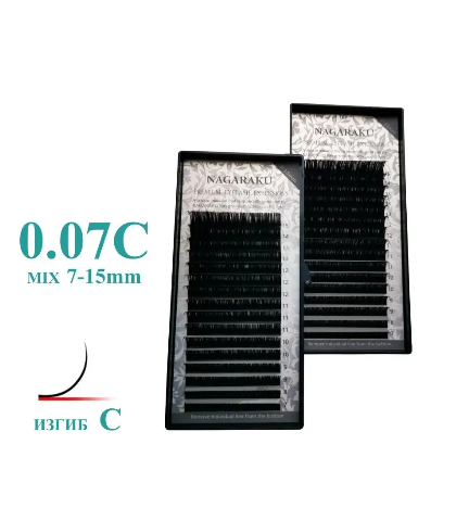 Nagaraku Черные ресницы микс C 0.10 7-15mm