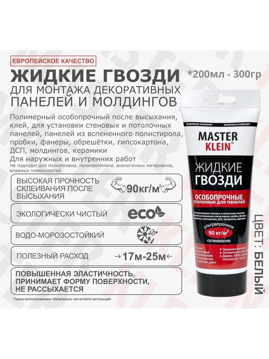 Жидкие гвозди особопрочные для панелей "Master Klein" 200мл./ 300гр. информация:
