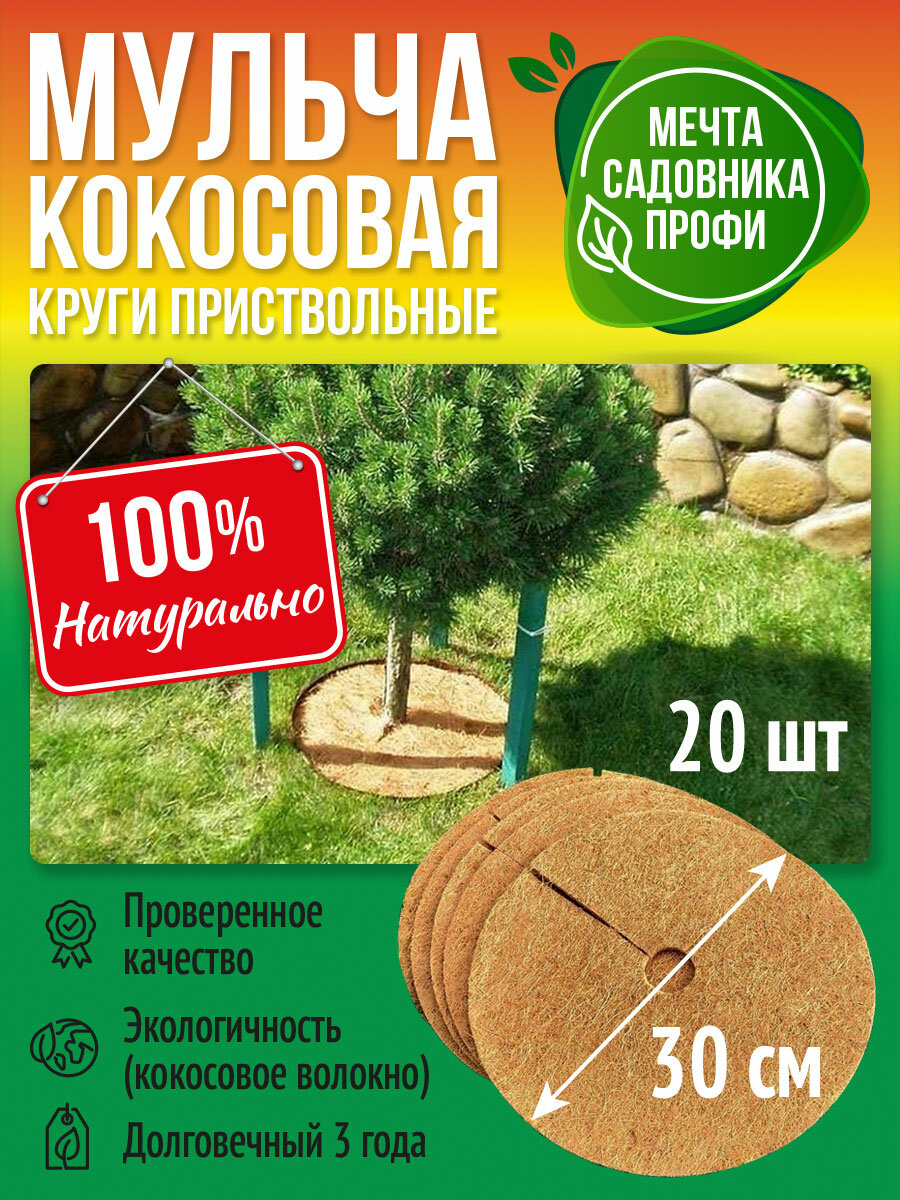 10 цен на Приствольный круг 30см,набор 20шт,кокосовая мульча, мульчаграм