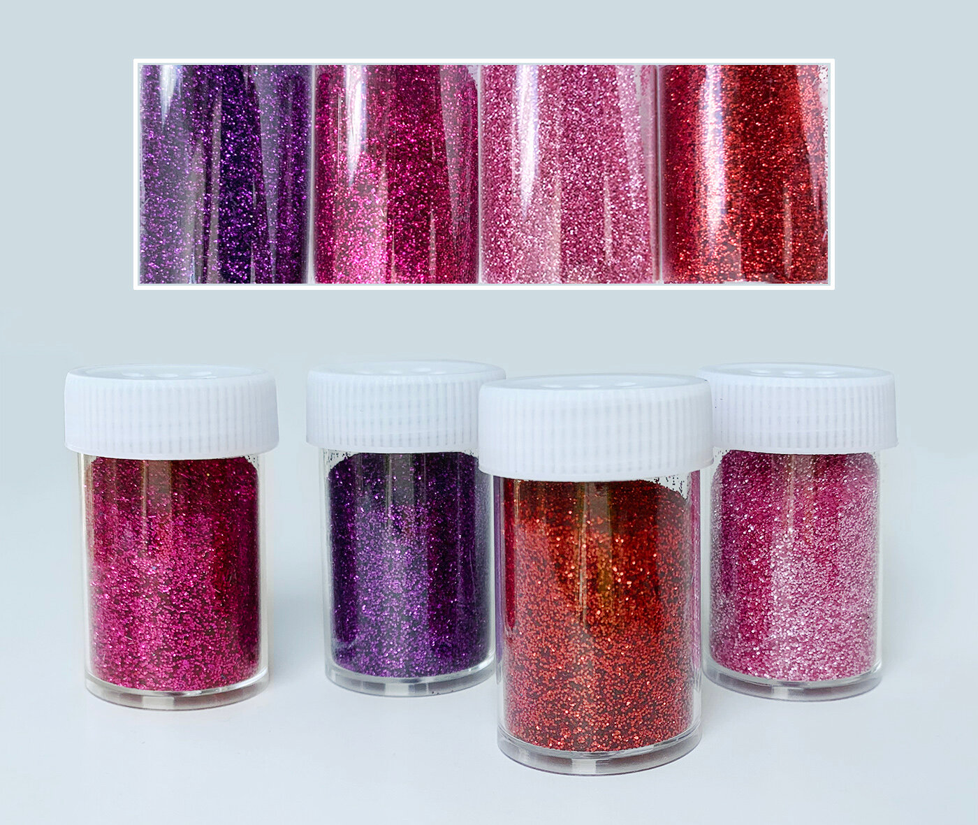 Блестки для творчества (глиттер), декора, оформления, DIY, смолы, маникюра, красный фиолетовый, пурпурный, розовый металлик, набор 4 цвета №6, 4 шт. по 13 г 265 ₽