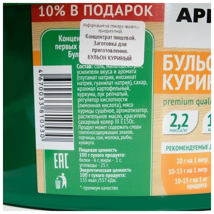 Бульон куриный 2 кг информация: