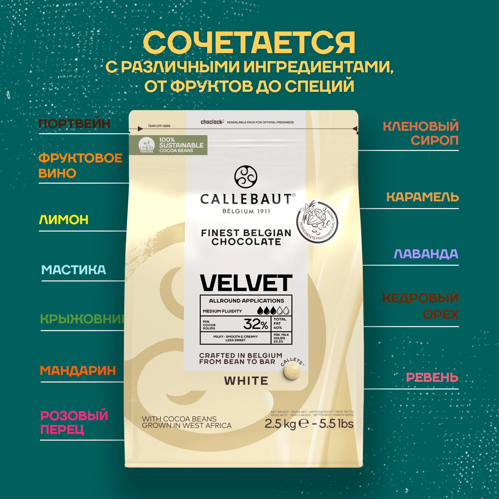 Шоколад белый 32% Callebaut Velvet, каллеты, Бельгия, 2,5 кг, W3-RT-U71 5 591 ₽