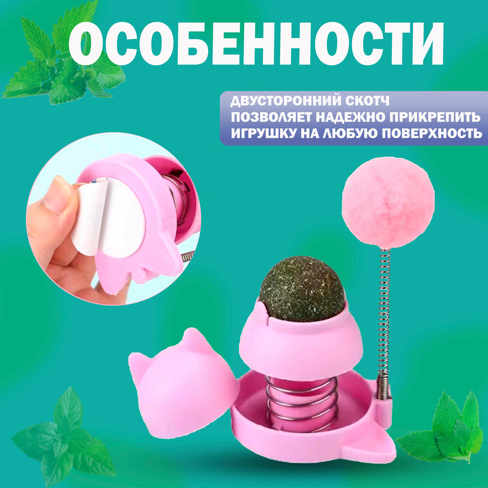 Игрушка для кошек с кошачьей мятой интерактивная дразнилка помпон, мятный шарик на стену информация: