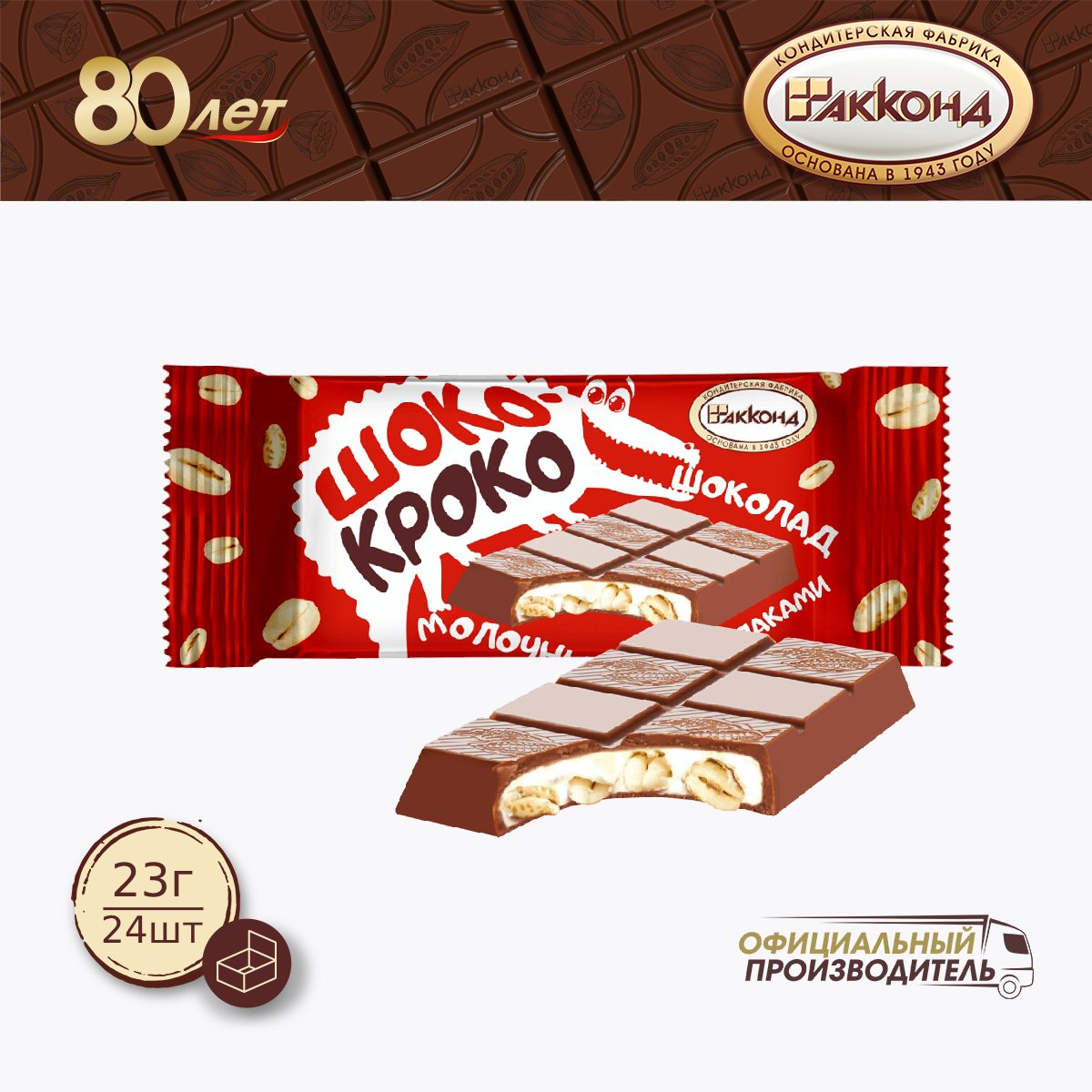 10 цен на Шоколад молочный "Шоко-кроко" со злаками 23 грамма (24 штуки) акконд