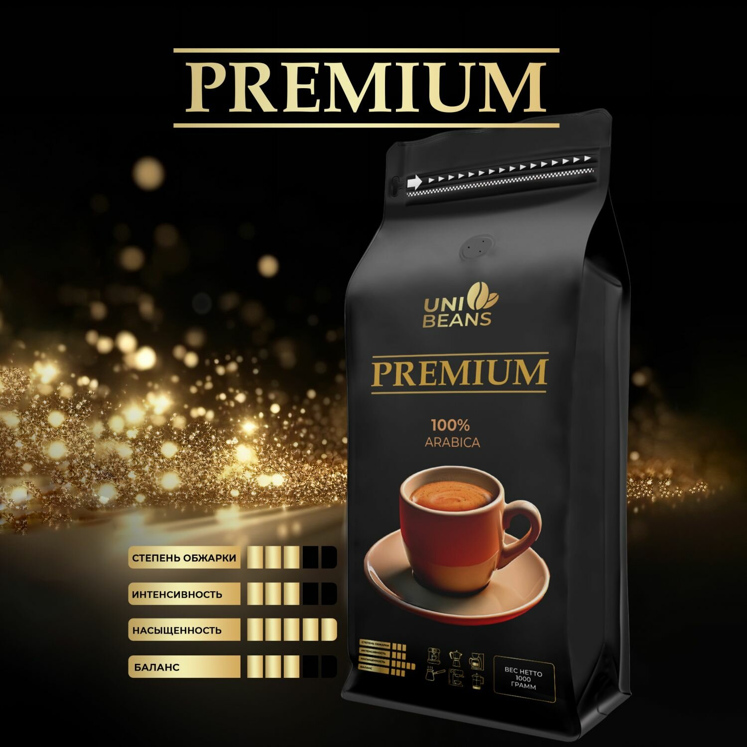 Кофе в зернах 1 кг UNIBEANS PREMIUM 100 % Арабика, свежая обжарка информация: