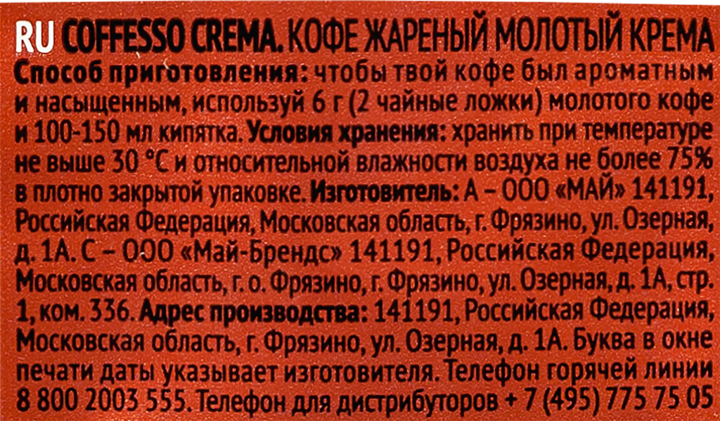 Кофе молотый Coffesso (Коффессо) "CREMA" 250 г информация: