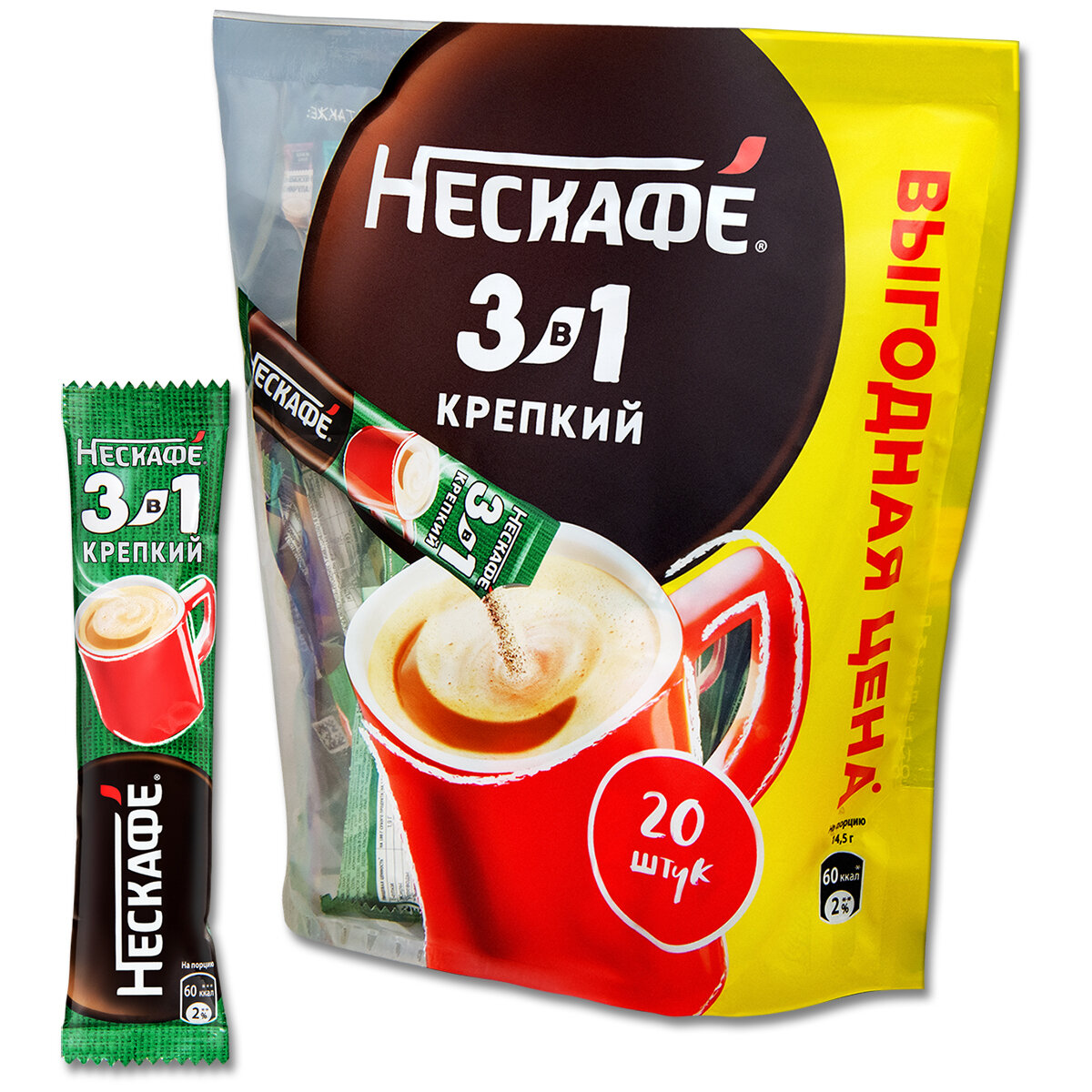 10 цен на Кофе 3в1 Nescafe STRONG, растворимый крепкий, 14.5 г, 20 шт.