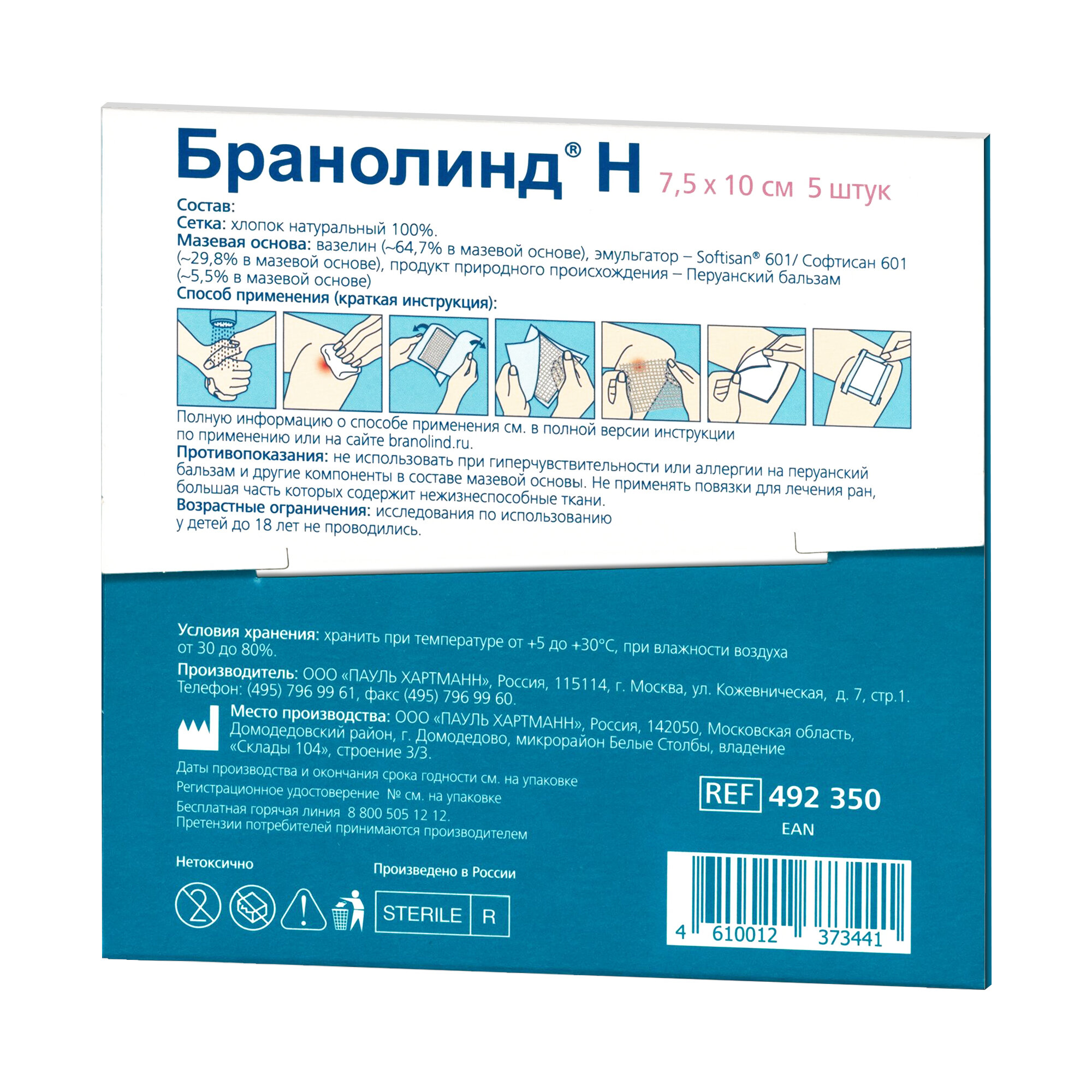 Branolind N / Бранолинд Н - стерильная повязка с перуанским бальзамом, 10х20 см информация: