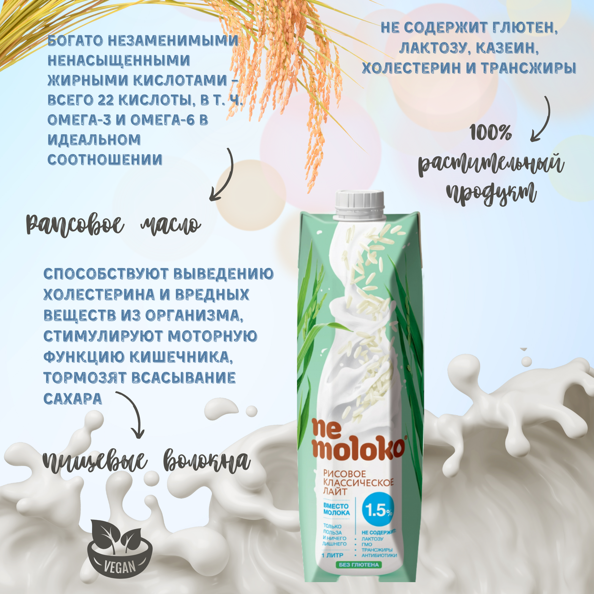 Напиток Nemoloko Рисовый Классический лайт 1,5% 1000 мл х 6 шт информация:
