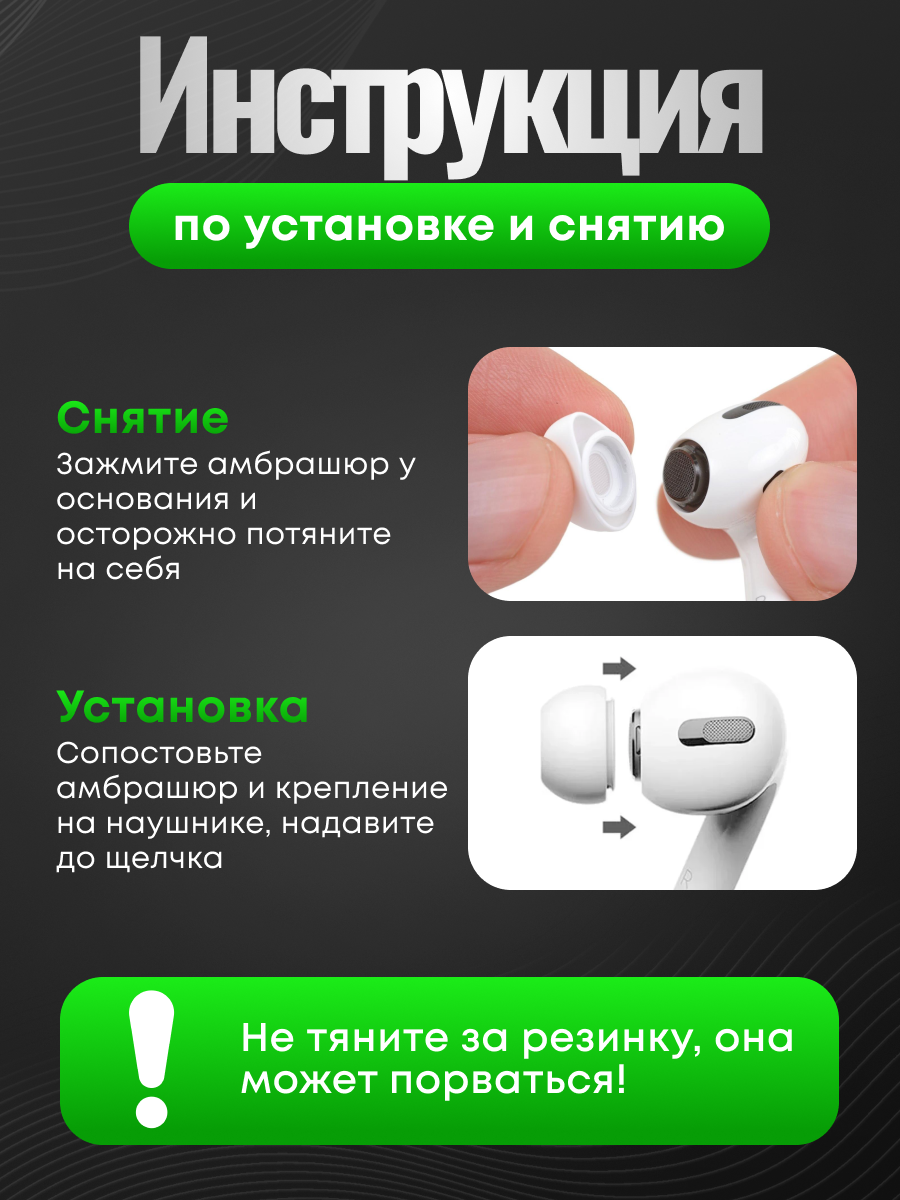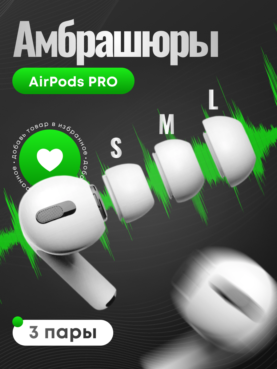 Набор амбушюр для наушников Apple Airpods Pro, насадки для наушников (3 пары, размер S, M, L) информация: