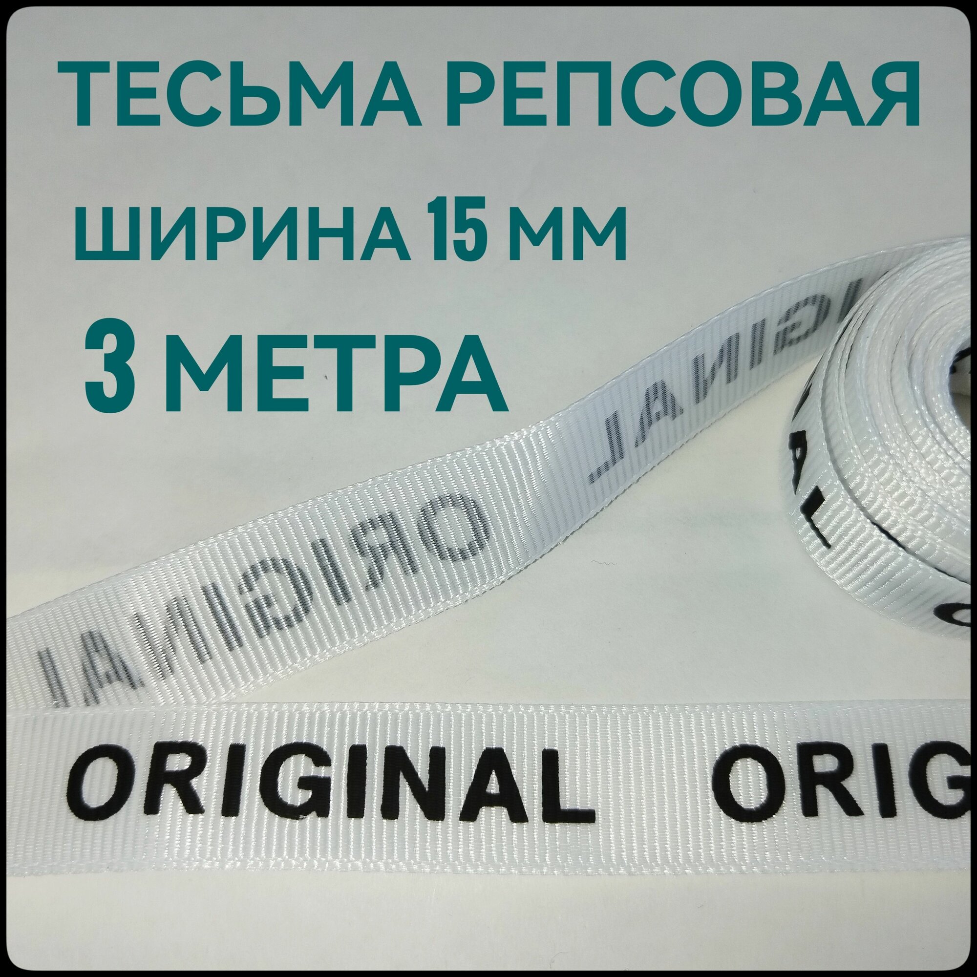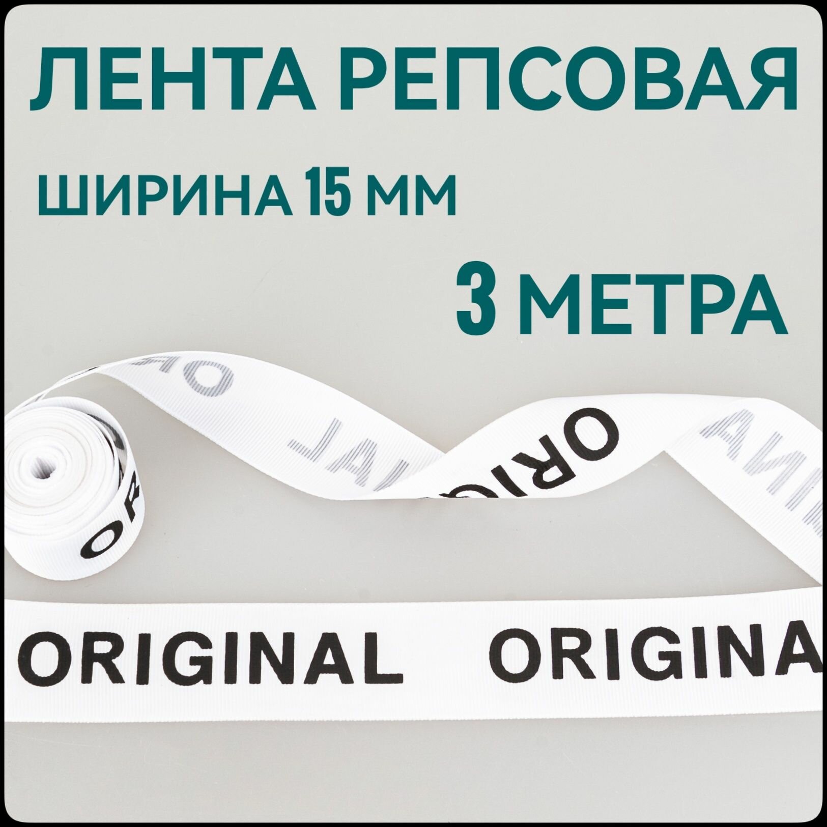 10 цен на Лента/ тесьма репсовая для шитья черный на белом с принтом ORIGINAL ш.15 мм, в уп.3 м, для шитья, творчества, рукоделия.