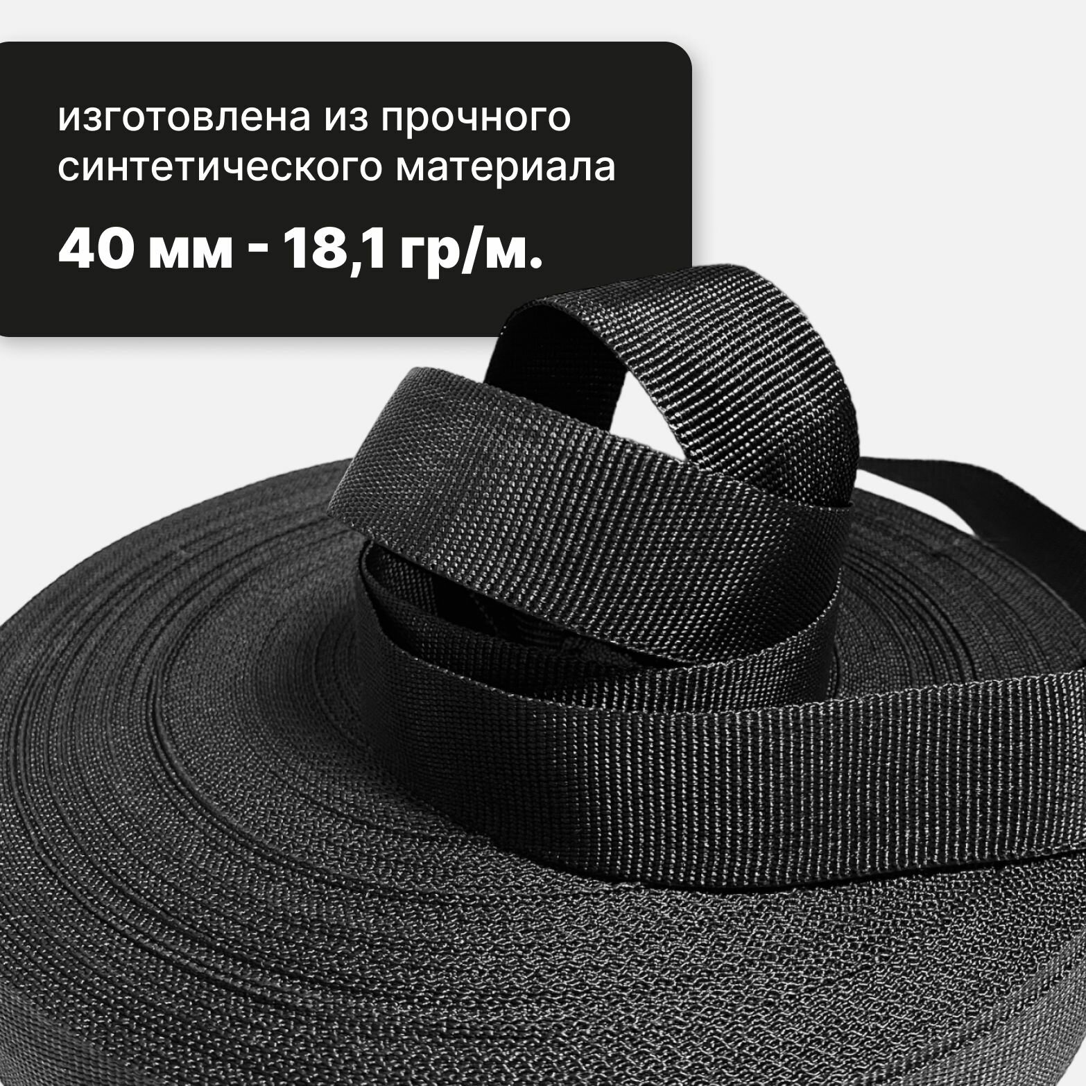 Стропа текстильная ременная лента, ширина 38 мм, черный, длина 10 м (плетение 300Д) информация: