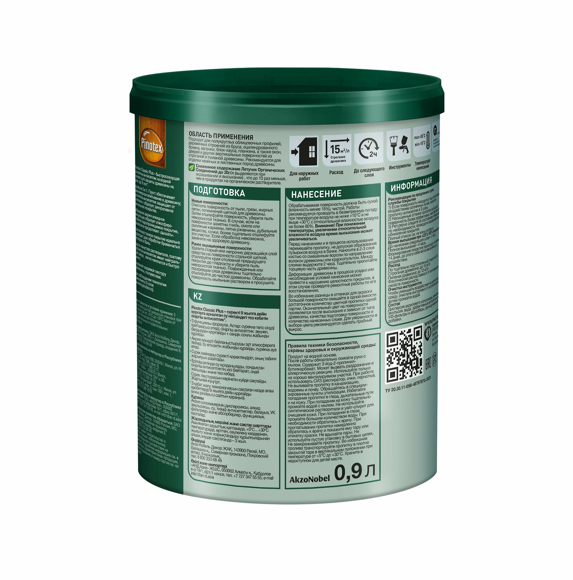 Пропитка-антисептик быстросохнущая для защиты древесины Pinotex Classic Plus, полуматовая (0,9л) бесцветный и под колеровку