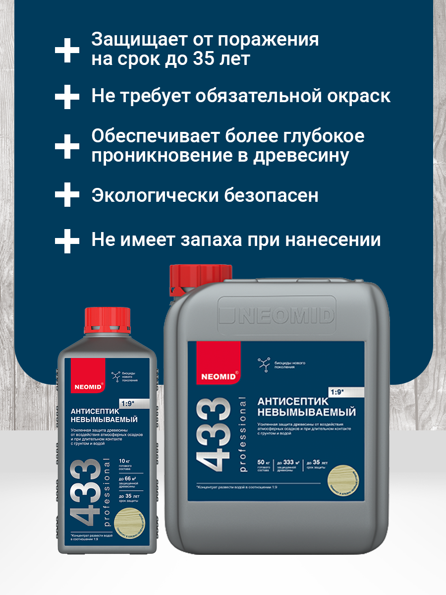 Отзывы на Neomid Антисептик невымываемый "Neomid 433 SuperEco" усиленный концентрат 1:9 6 штуки в комплекте по 1 кг