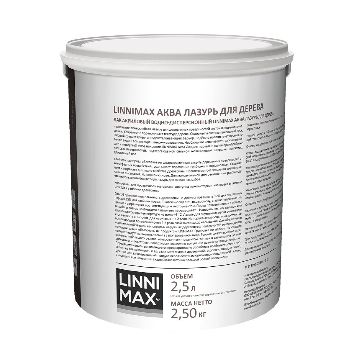 Аква Лазурь LINNIMAX для защиты дерева, акриловая, лессирующая, полуматовая 2,5л палисандр информация: