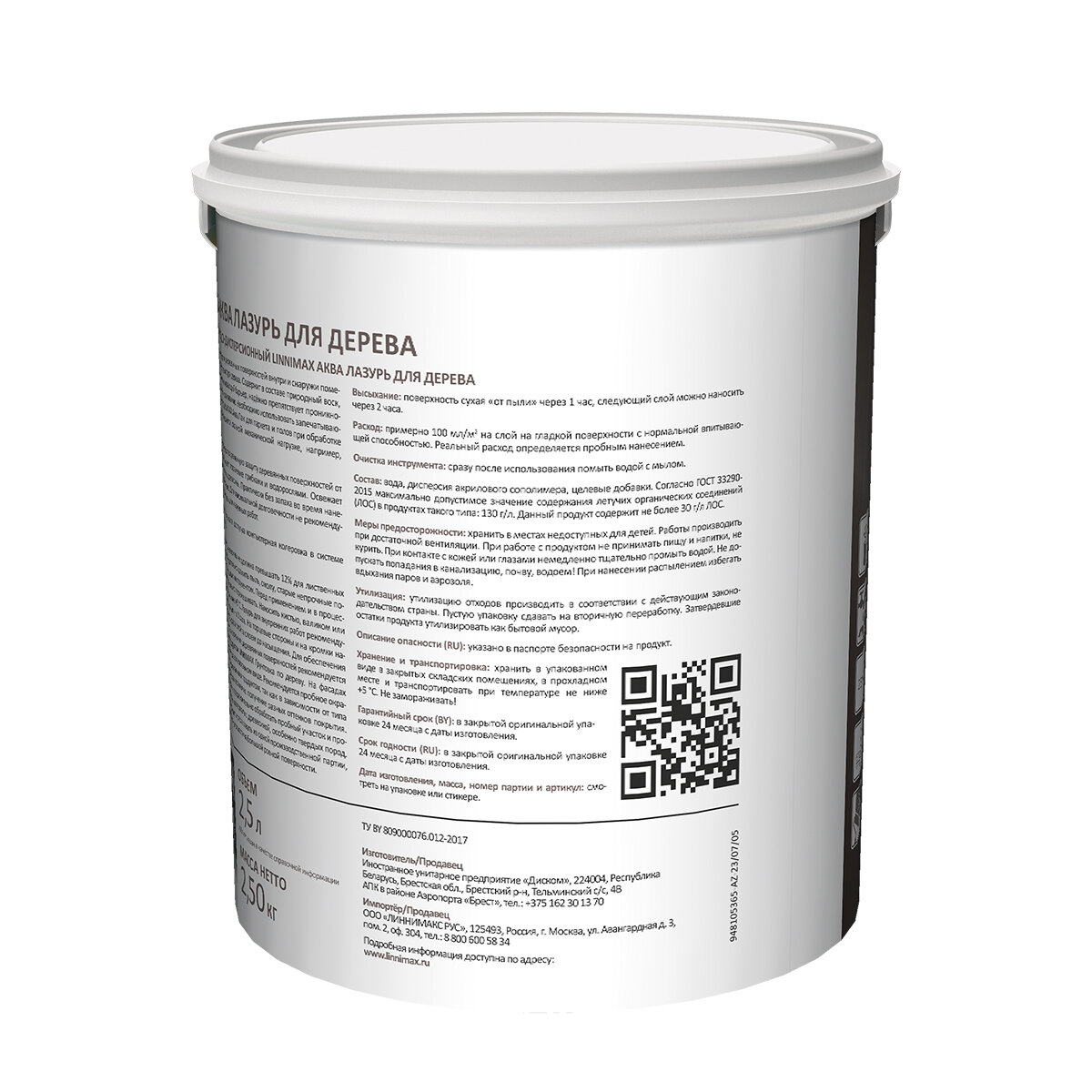 Аква Лазурь LINNIMAX для защиты дерева, акриловая, лессирующая, полуматовая 9л сосна информация:
