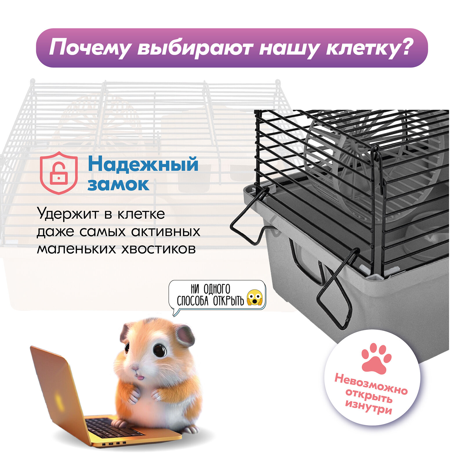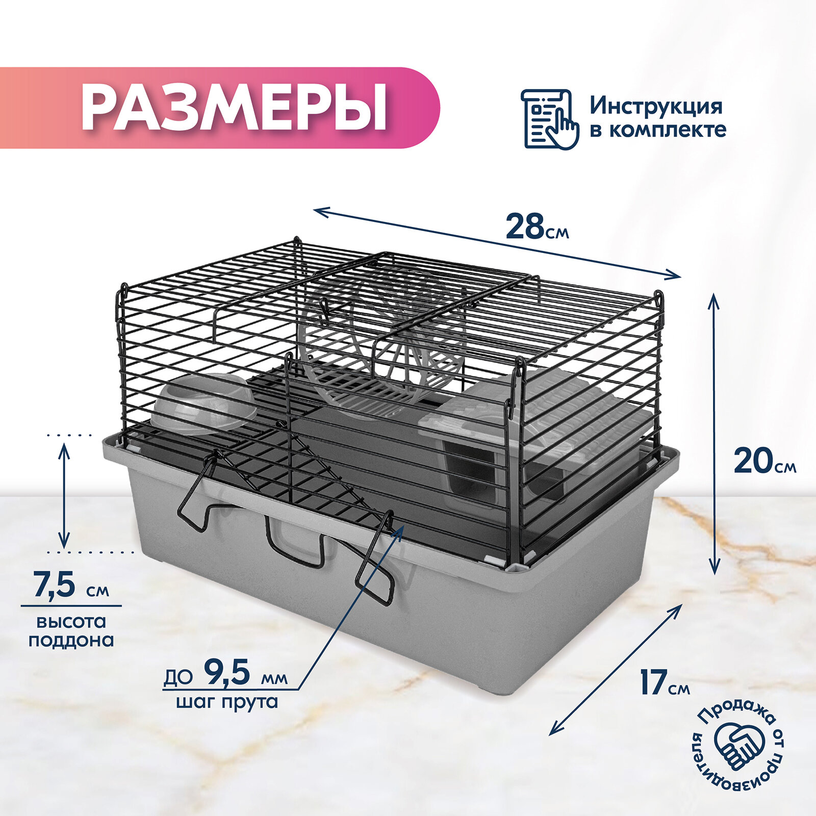 Отзывы на Клетка-мини д/мелких грызунов "PetTails", складная, шаг прута до 9,5мм, 28*17*h20см (+домик, миска, колесо) серая
