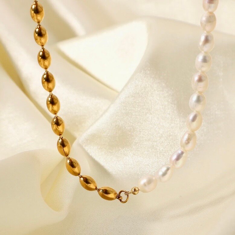 10 цен на Колье чокер позолоченное с натуральным барочным жемчугом