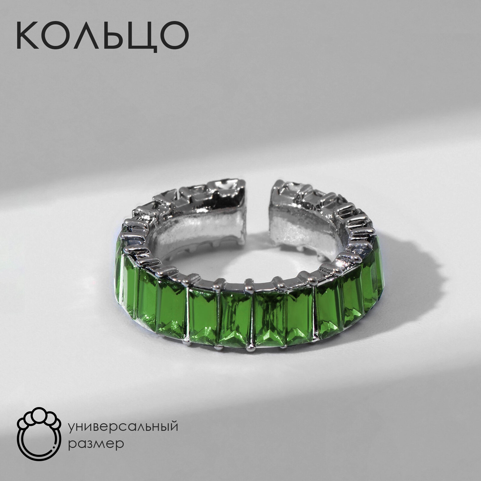 Кольцо "Тренд" параллель, цвет зелёный в серебре, безразмерное (от 17 размера) информация: