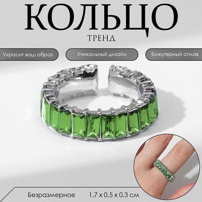 Отзывы на Кольцо "Тренд" параллель, цвет зелёный в серебре, безразмерное (от 17 размера)