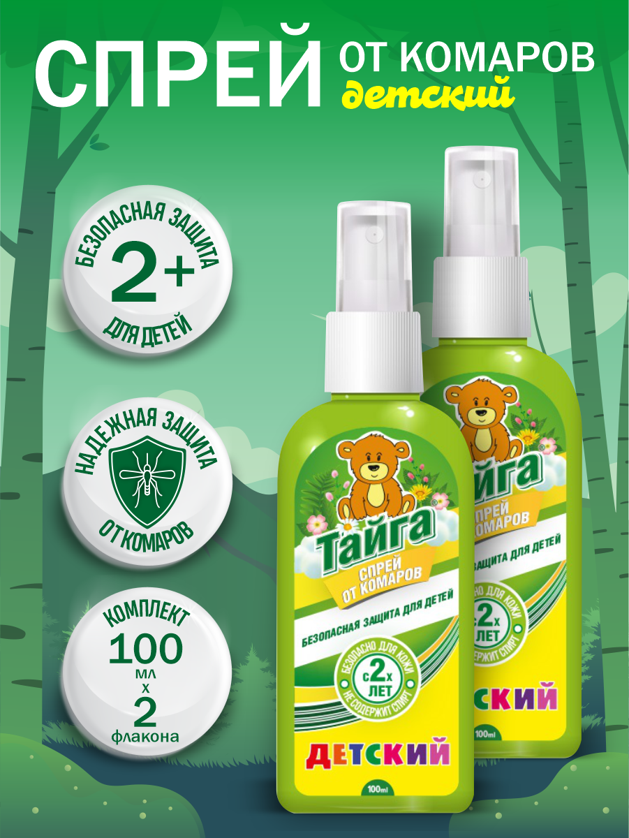 Спрей Тайга Детский репеллентный от комаров ИН-77/ИН-75, 100 мл, 2 шт. информация: