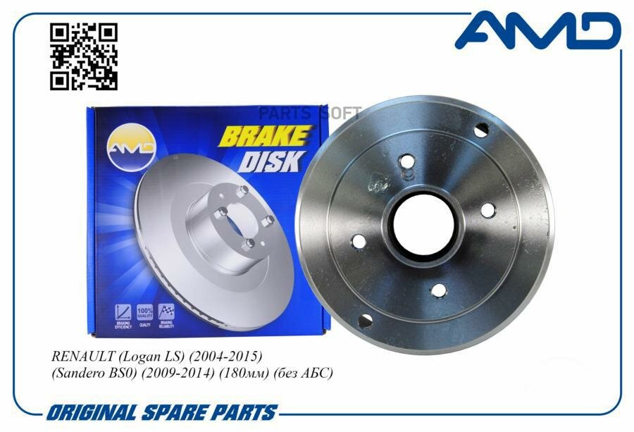 Барабан тормозной Lada Largus; Renault Logan 04-, Clio 98-, Symbol 08- D=180 мм (-ABS) AMD AMDBD479