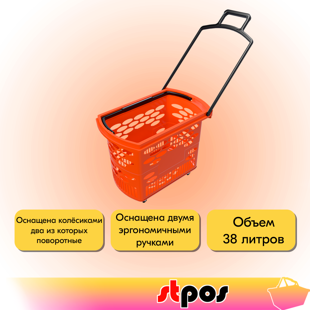Корзина тележка пластиковая 4 колеса 38л BASKET-38, Оранжевый информация: