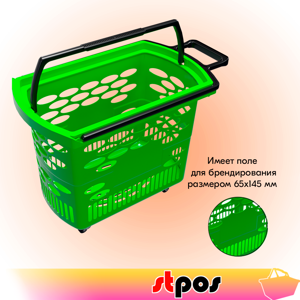 Корзина тележка пластиковая 4 колеса 38л BASKET-38, RAL6018, Салатовый информация: