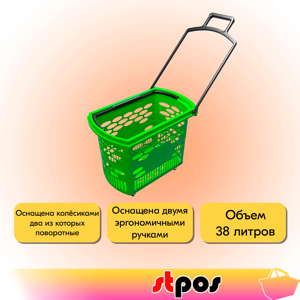 Отзывы на Корзина тележка пластиковая 4 колеса 38л BASKET-38, RAL6018, Салатовый