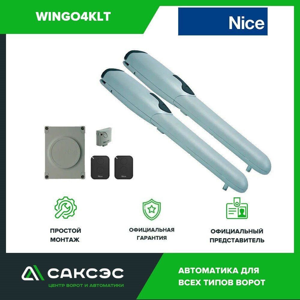 Мы выбрали 10 лучших цен на Nice WINGO4KLT комплект привода для распашных ворот, вес створки до 400кг. Перед тем как купить Nice WINGO4KLT комплект привода для распашных ворот, вес створки до 400кг посмотрите найденные предложения из Яндекс Маркета и других сайтов на основе XML фидов.