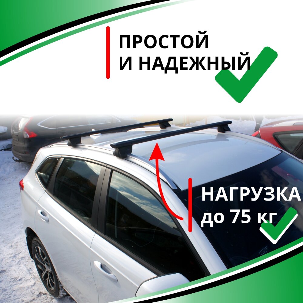 10 цен на Багажник на крышу Черри Тигго 4 про (Chery Tiggo 4 PRO) внедорожник на интегрированные рейлинги от 2020. Крыловидные дуги, черные 130 см