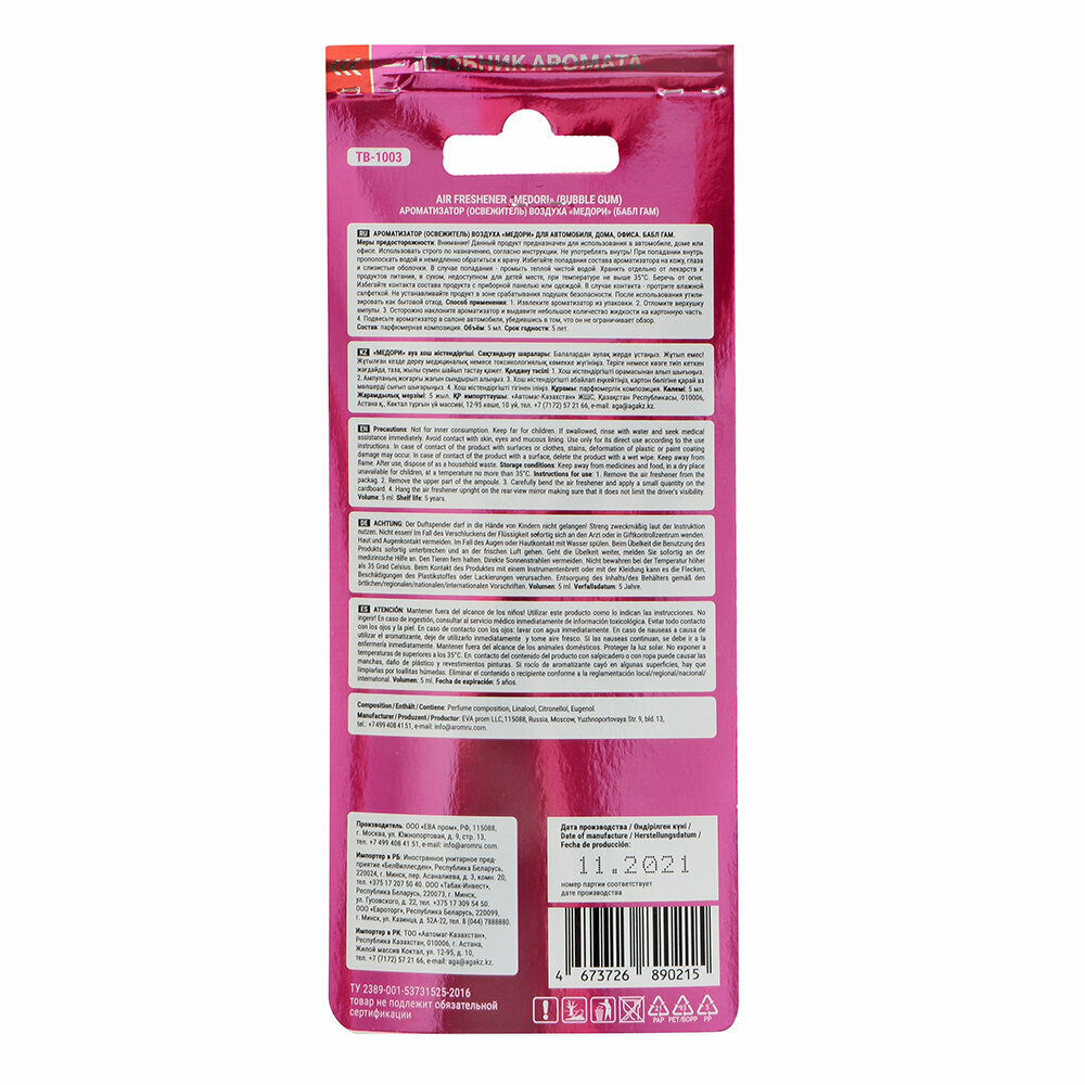 10 цен на Ароматизатор подвесной MEDORI с ароматом "Bubble Gum" для дома, офиса, автомобиля капсула 5мл