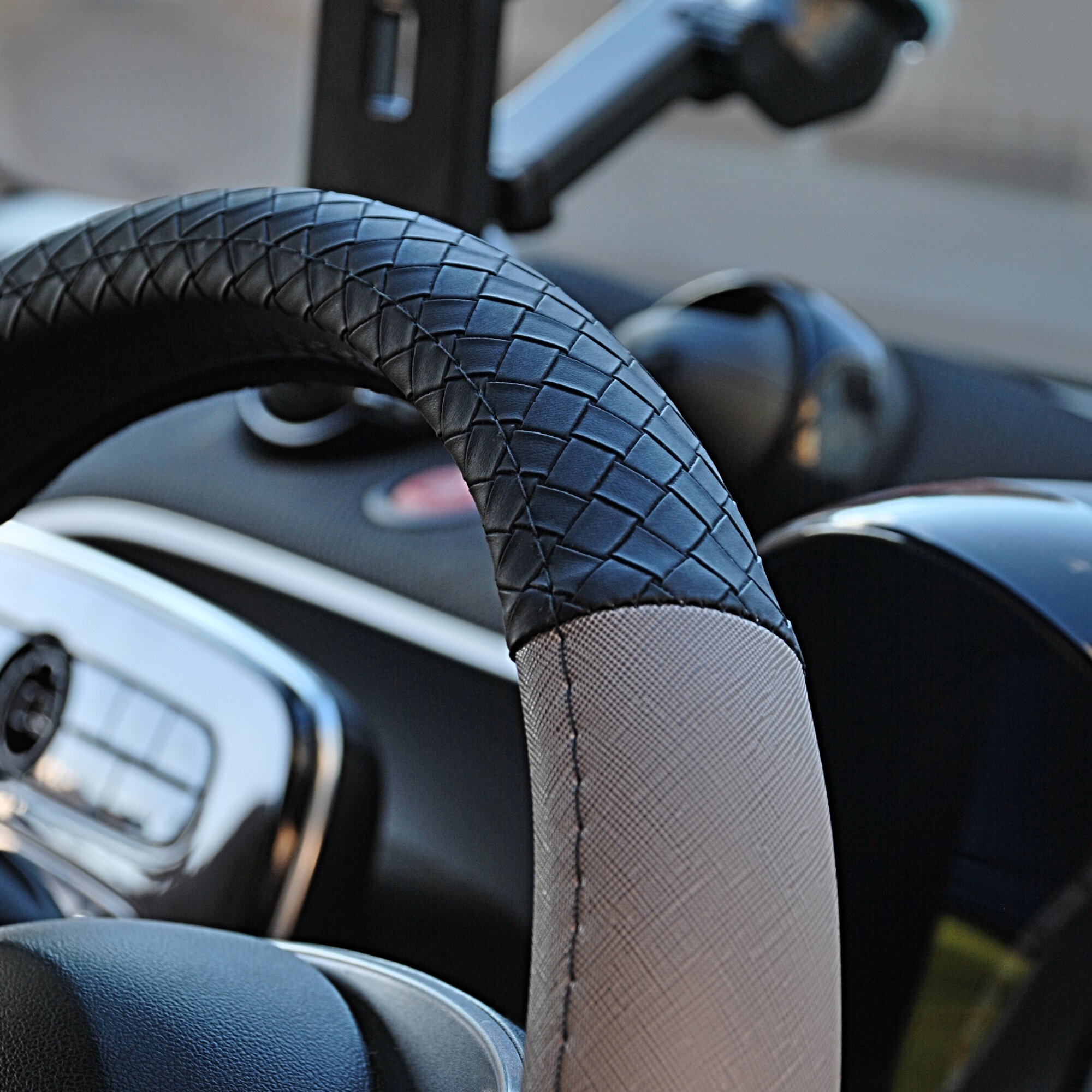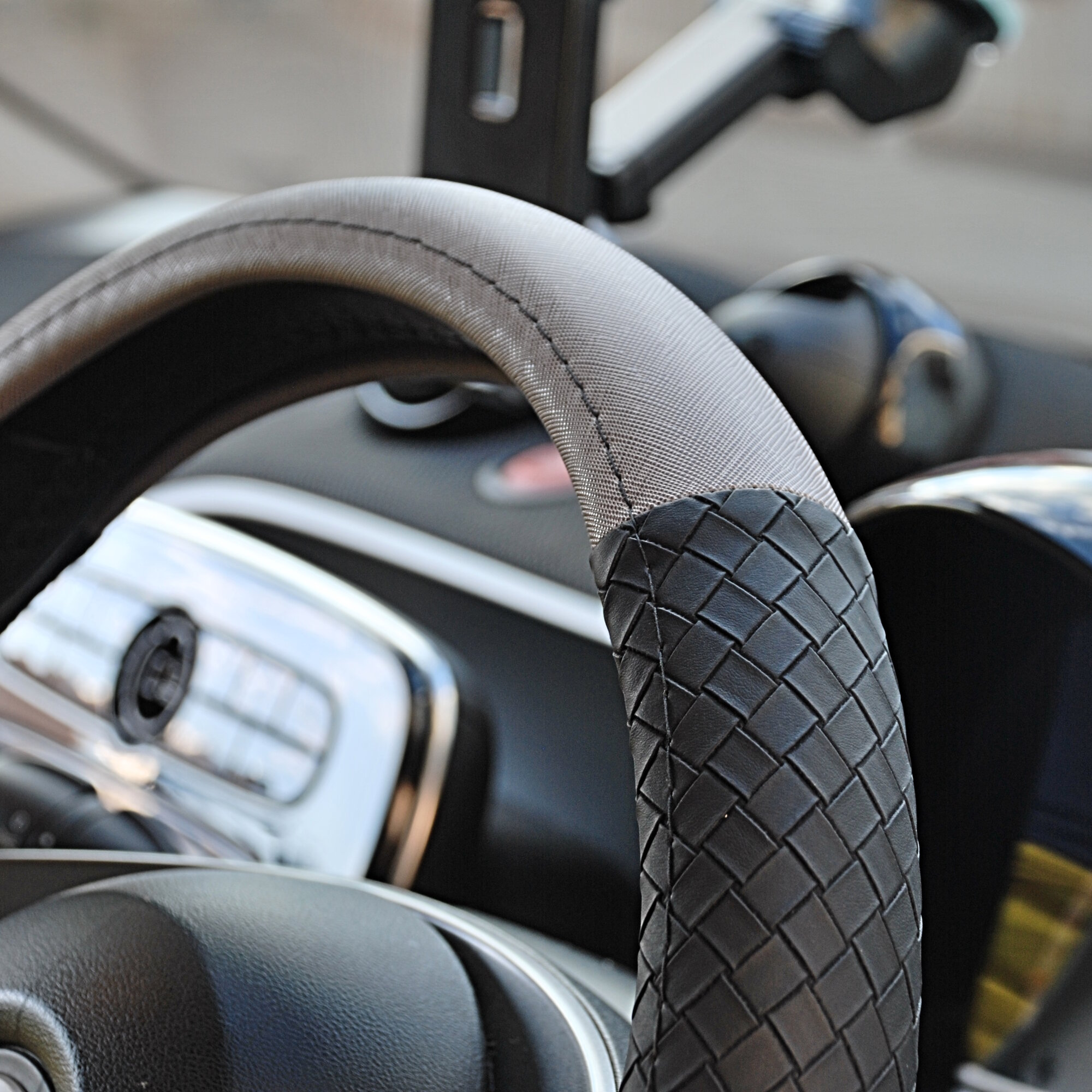 Оплетка на руль, 37-39 см, комбинированная эко кожа гладкая черная/перфорация серая