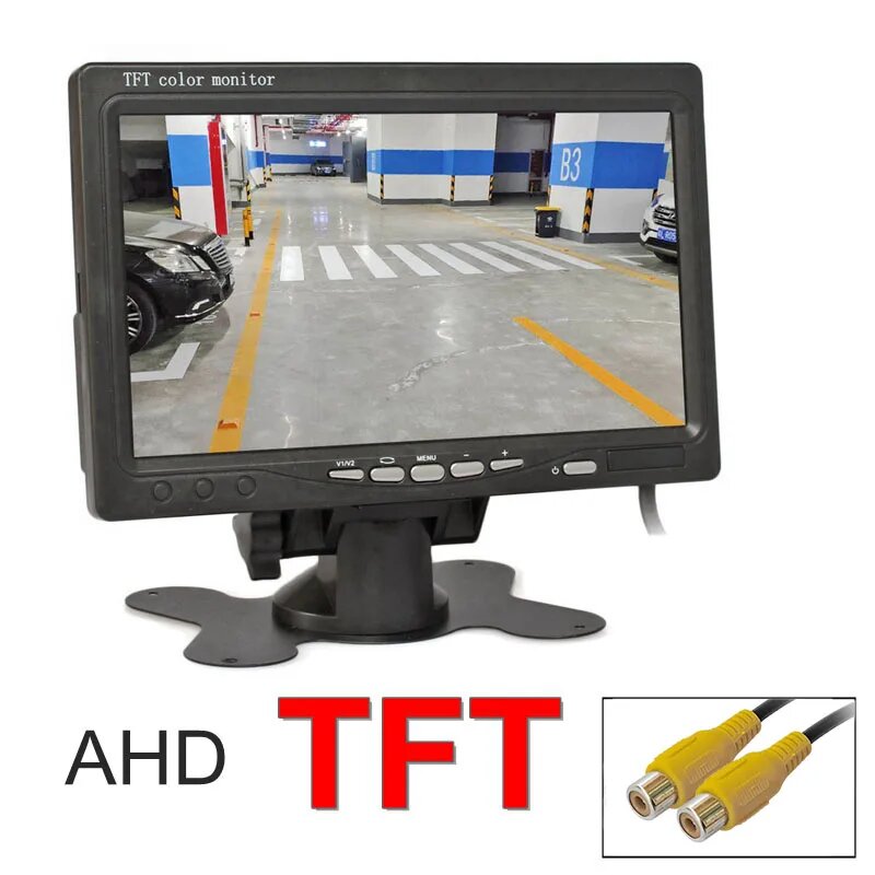 10 цен на DIYKIT 1024x600 AHD 7-дюймовый TFT ЖК-монитор автомобиля HD Монитор заднего вида Поддержка 1080P AHD-камеры 2 x 4-контактный видеовход, 7inch AHD RCA