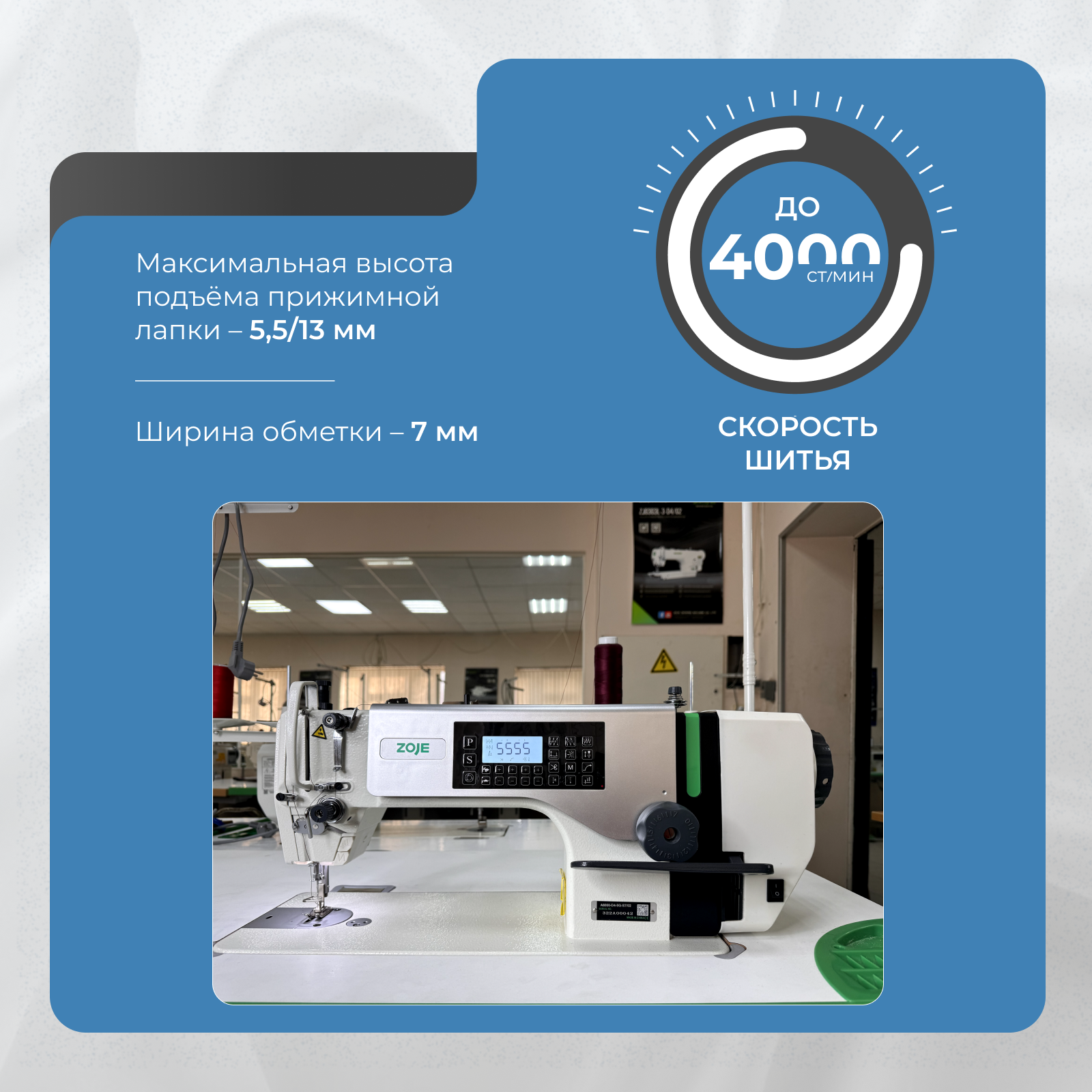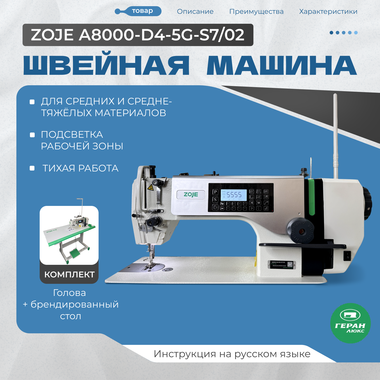 Прямострочная одноигольная промышленная швейная машина ZOJE A8000-D4-5G-S7/02 с автоматическими функциями для средних и средне-тяжелых материалов информация: