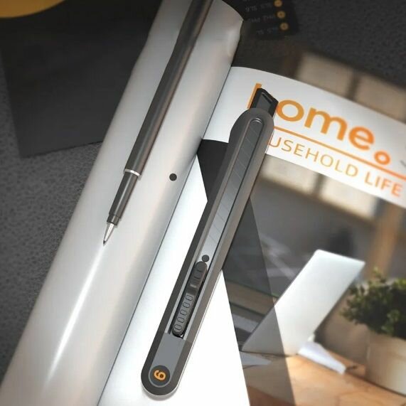Технический нож "Home Series Gray" Deli HT4009C (сегментированное черное лезвие 9мм, эксклюзивный дизайн, корпус из софттач пластика)