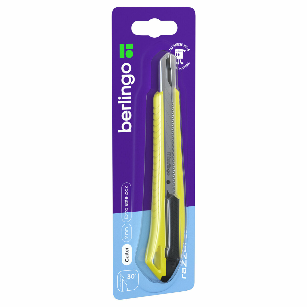 10 цен на 5 шт. Нож канцелярский 9мм Berlingo "Razzor 200", auto-lock, металл. направл., желтый, европодвес