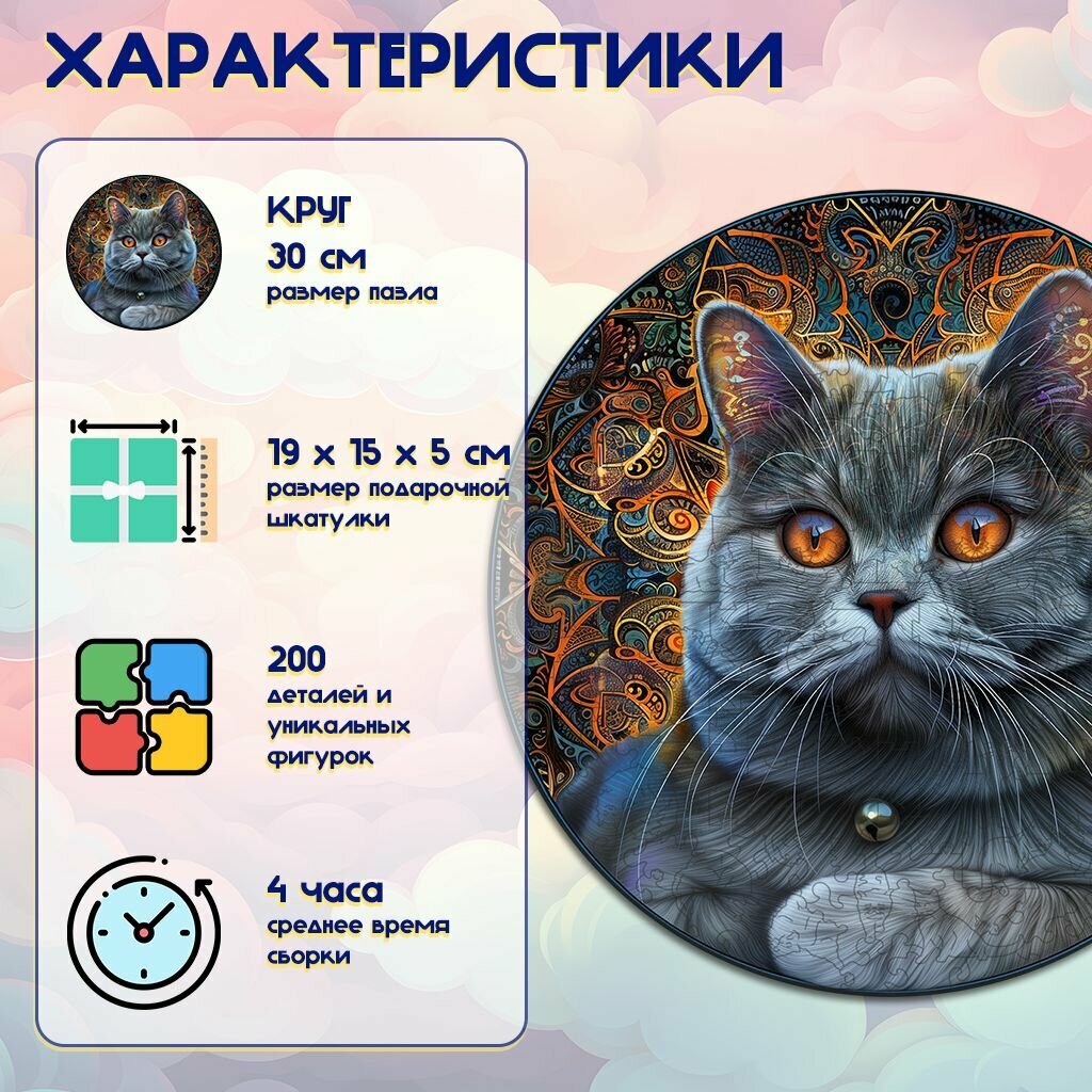 Деревянный пазл BoberBox "Мандала Британская Кошка", 200 деталей информация: