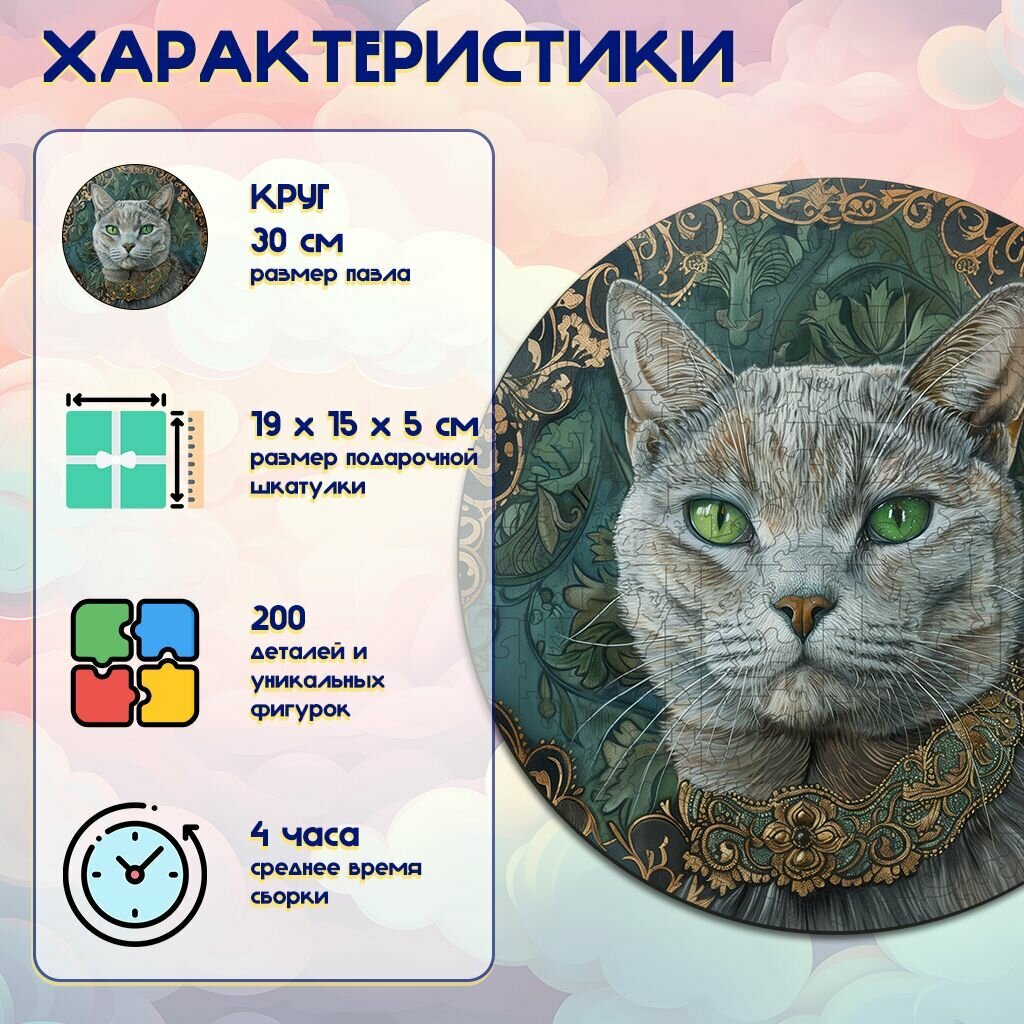 Деревянный пазл BoberBox "Винтажный кот", 200 деталей информация: